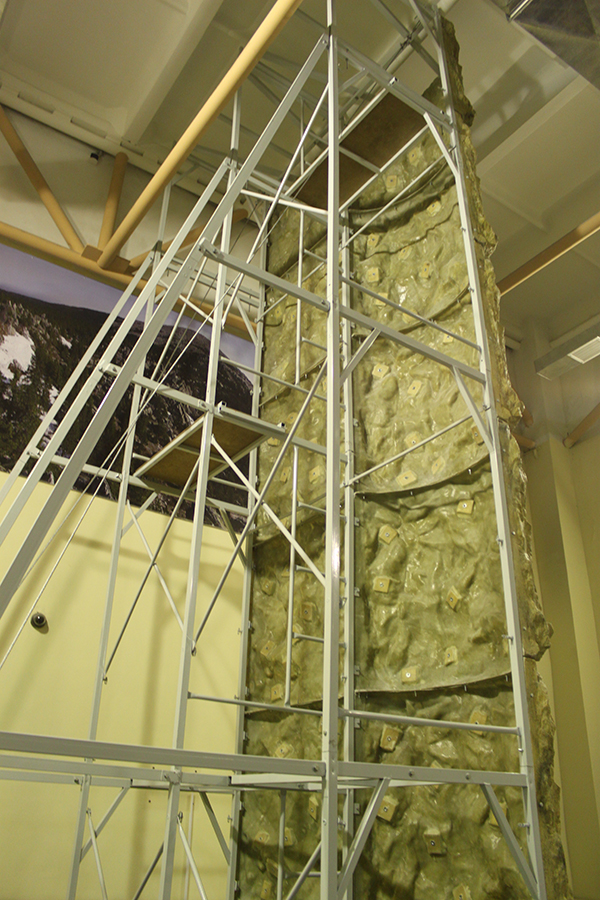Покрытие скалодрома – стеклопластиковые панели, серия «Рельеф-1», имитирующие натуральный рельеф скалы, натуральный камень, с возможностью крепления скалолазных зацепов.