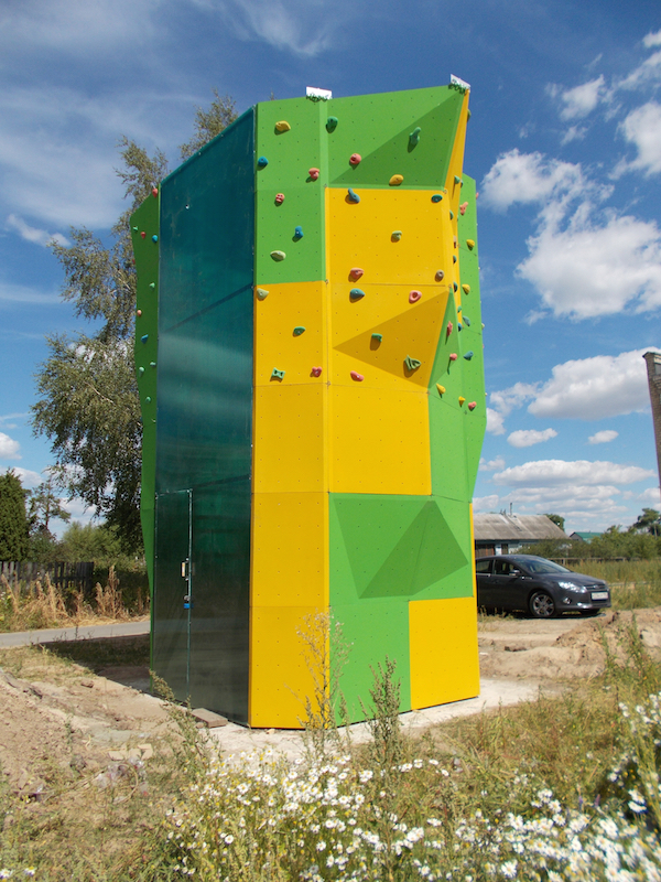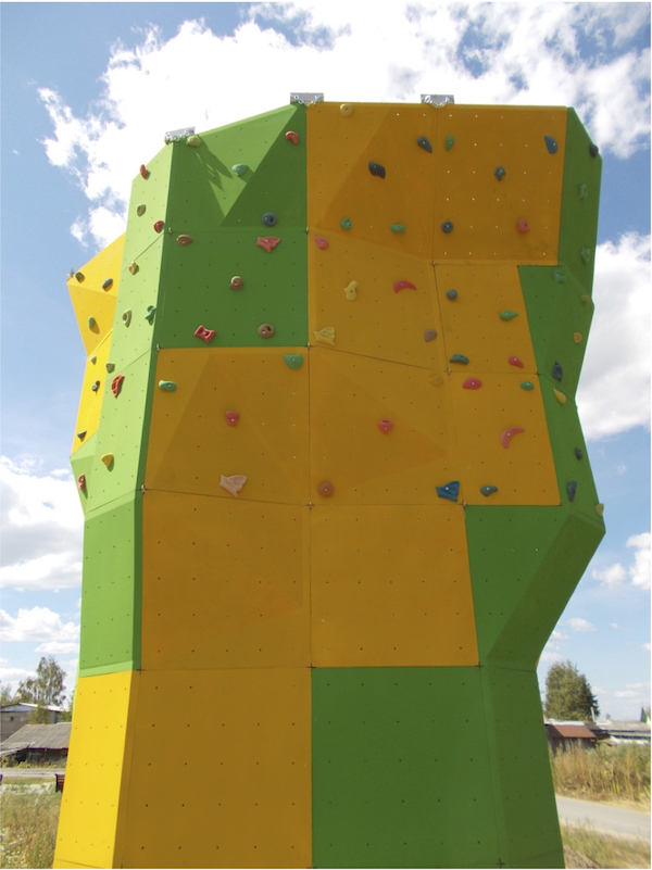 Высота скалодрома – 6 м, основание - 3х3 м.
